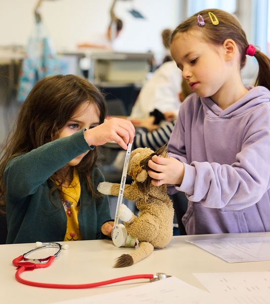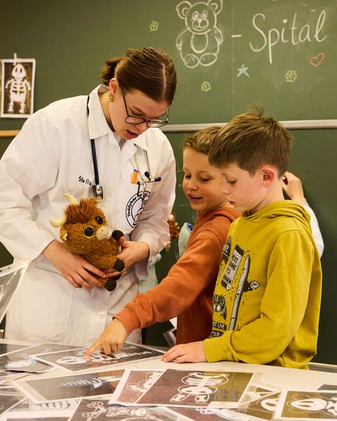 Hautnah haben die Kinder erlebt, dass ein Spitalbesuch gar nicht „gruselig“ sein muss. Gemeinsam mit den Dr. Teds wurden kranke Hasen geröntgt, Bären verarztet und Einhörner fachmännisch eingegipst. Die Berner Sanitätspolizei “Sano” liess die Kinder in die Ambulanz schauen und beantwortete viele Fragen.